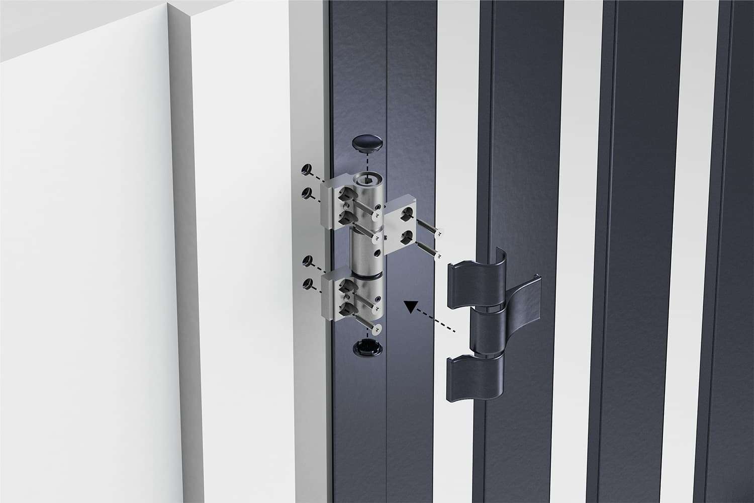- Несильно надавите на верхнюю, а затем на нижнюю панель с наружной стороны ворот. Убедитесь, что между полотном и проемом не образовались зазоры.