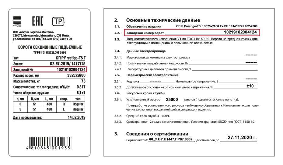 - Сверьте номер ворот в паспорте с номером на табличке изделия (обычно расположена с внутренней стороны ворот на второй или третьей панели снизу).