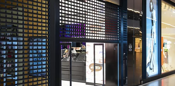Роллетные решетки компактны, поэтому не занимают много места в торговом зале или в офисе. В закрытом положении они гармонично сочетаются с интерьером или экстерьером, а в открытом остаются практически незаметными.