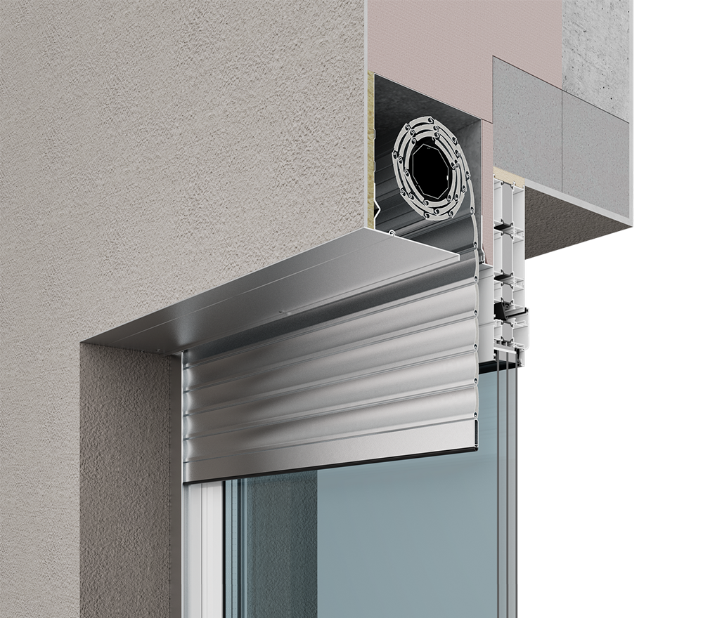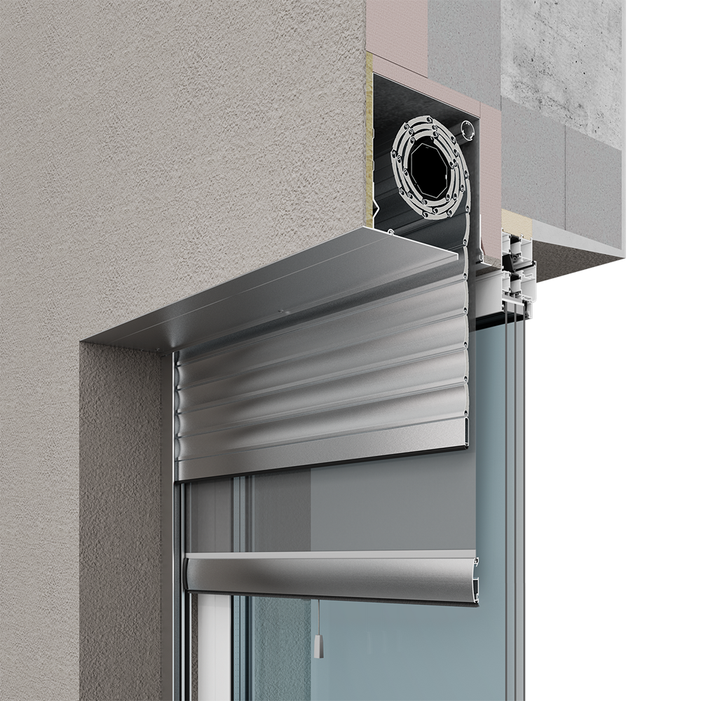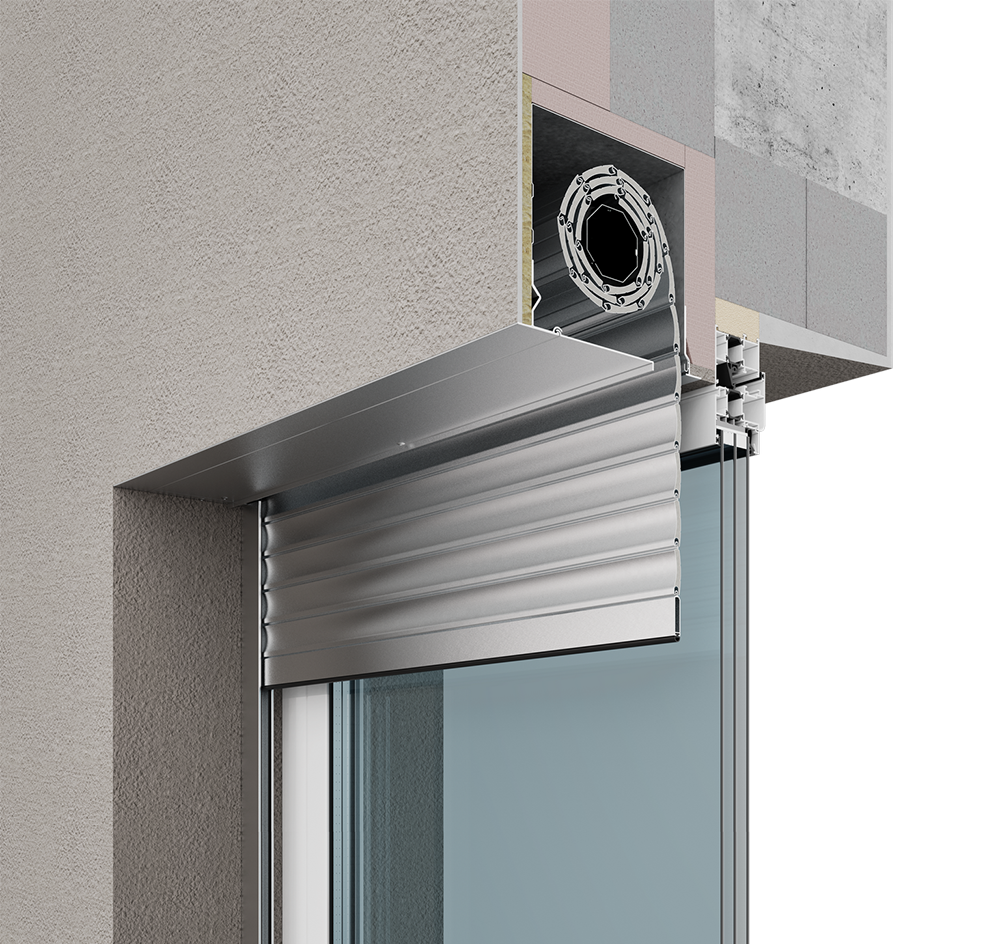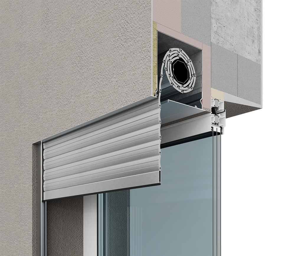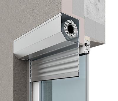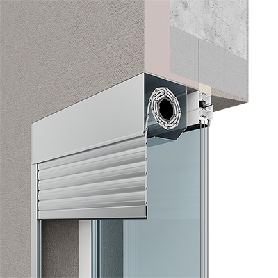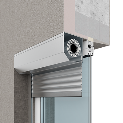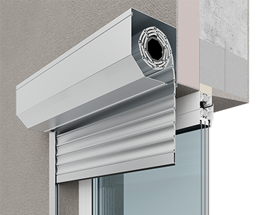 Короб роллеты устанавливается на стену фасада, обеспечивая максимальное использование светового проема.